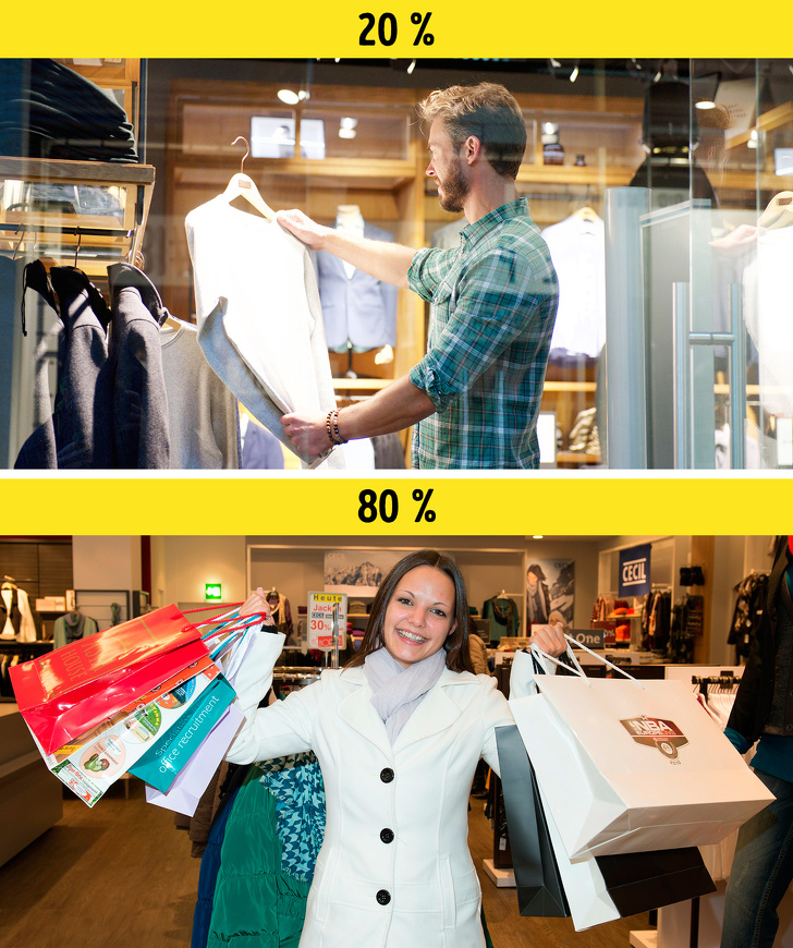- Жінки скоюють 80 % всіх покупок в світі. Воно й зрозуміло, адже дама повинна не тільки слідкувати та доглядати за собою, але і підтримувати тепло і затишок в домі. Крім усього іншого жінки активно впливають на купівельну спроможність своїх подружжя.