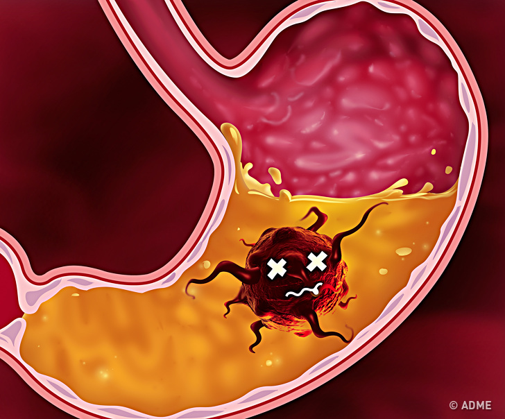 Крім того, навіть якщо м'ясо з якоїсь причини потрапило в шлунок в первозданному вигляді, у нього немає шансів вижити в шлунковому соку. Воно буквально розчиниться разом з тієї самої горезвісної " раковою пухлиною.