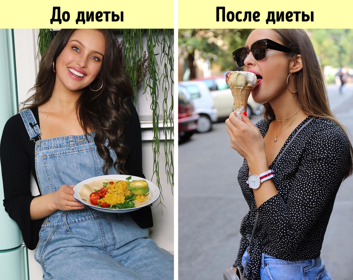 Варто перестати обмежувати себе в їжі, як організм різко пожвавлюється — він вирішує, що настали ситі часи і потрібно з'їсти якомога більше про запас. Наше тіло змушує нас є, навіть якщо фактично ми не голодні.