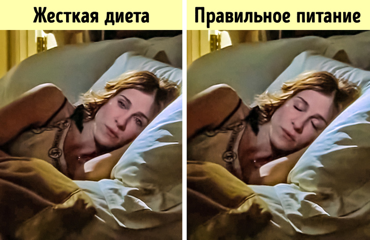 Не сприяє зануренню в обійми Морфея і стрес, випробовуваний організмом при позбавленні їжі. А зниження якості сну, в свою чергу, веде до набору ваги.