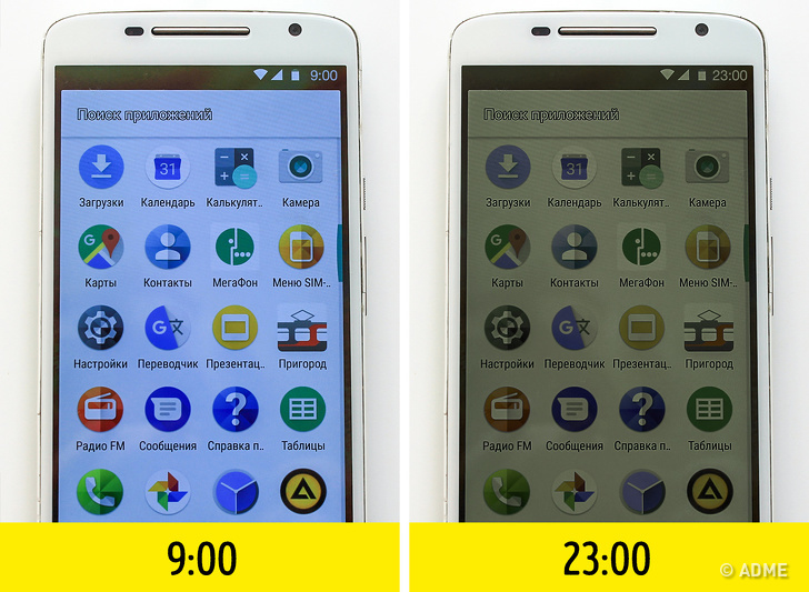 - Якщо ви поки не готові слідувати їх прикладу, скористайтесь окулярами зі спеціальними лінзами або встановіть на свій смартфон одне з додатків з фільтром синього світла. В автоматичному режимі додаток буде регулювати яскравість дисплею вашого пристрою у відповідності з часом доби.