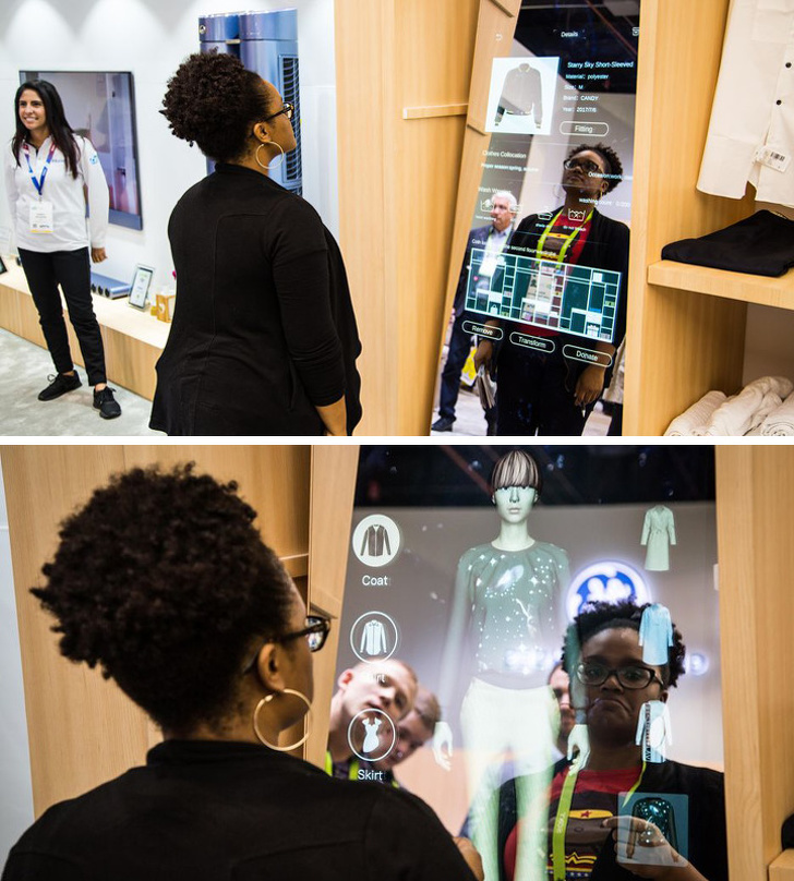 Не любите щоранку підбирати нові ансамблі в одязі? Розумне дзеркало Haier зробить це за вас. Спочатку в його базу даних потрібно внести всі ваші речі, снадбив їх попередньо спеціальним чіпом. Потім дзеркало допоможе підібрати комплект з існуючих деталей одягу. А ще воно здатне підказати, де ви залишили улюблений светр, і дати корисні поради щодо прання кожної деталі гардеробу.