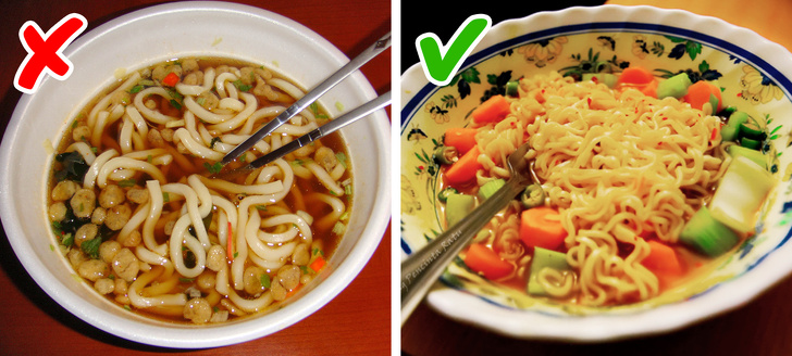 Якщо ви любите локшину швидкого приготування, використайте її як основу для інших страв. Серйозної шкоди цей продукт може завдати тільки при тривалому щоденному вживанні. І то лише з тієї причини, що організм не буде отримувати достатньо вітамінів та макроелементів. Однак від разової порції шкоди не буде.