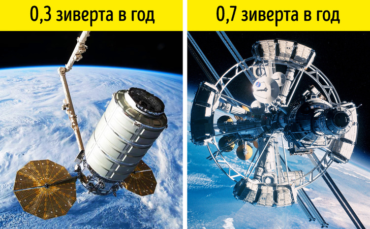 Згідно з дослідженнями, опублікованими в журналі Icarus, людина зможе зробити тільки один політ на Марс без істотної шкоди здоров'ю. За час польоту туди і назад він отримає приблизно 60 % від дози радіації, допустимої для космонавта за всю його кар'єру. В середньому за рік подорожі до Марса космонавт отримає приблизно 0,7 зіверт опромінення — це близько 73 рентген. Для порівняння: за рік перебування на МКС людина отримує близько 0,3 зіверт, а на Землі — 2,4 мілізіверта.