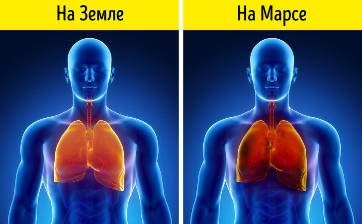 Приповерхневі шари атмосфери на Марсі містять велику кількість абразивного пилу. Її частинки, накопичуючись в легенях людини, можуть спровокувати загибель протягом декількох тижнів.