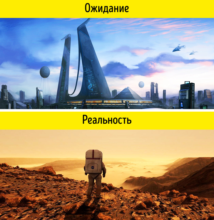 І перші споруди зовсім не будуть схожі на футуристичні локації, як в Star Wars. Знадобиться забезпечити джерело кисню і їжі (висадити зелені рослини і плодоносні культури). До того ж будь-яка помилка може призвести до загибелі: випадковий вдих марсіанської атмосфери, розгерметизація скафандра, серйозна поломка обладнання та багато іншого. До всього цього доведеться бути готовим.