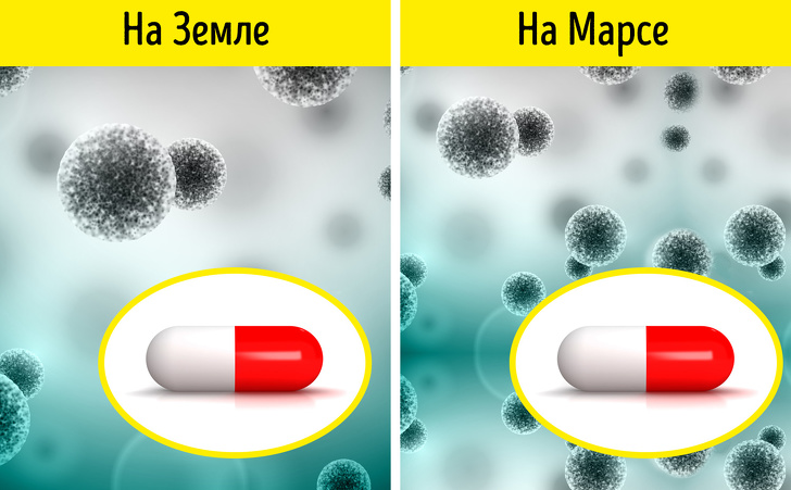 Таким чином, імовірність загострення хвороб, особливо хронічних, сильно зростає. Звідси випливає висновок, що здоров'я майбутнього колоніста має бути ідеальним, інакше по дорозі на Марс йому не вижити.
