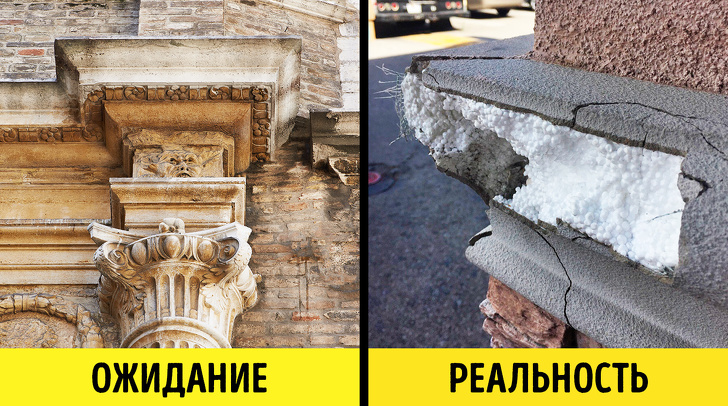 5. Деякі декоративні елементи роблять з пінопласту і покривають тонким шаром бетону. Це дешевше, ніж справжній камінь, і виглядає відмінно — принаймні, поки не зламається.