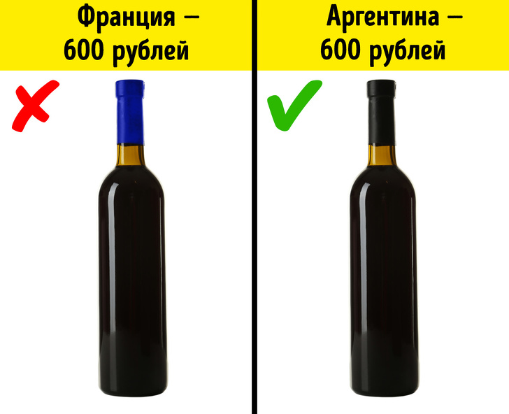 При купівлі вина вартістю до 500 рублів не варто віддавати перевагу французьким і італійським, краще звернути увагу на вина Нового Світу (Чилі, Аргентина), ПАР, тому що там ймовірність знайти хороше вино за прийнятними цінами вище.
