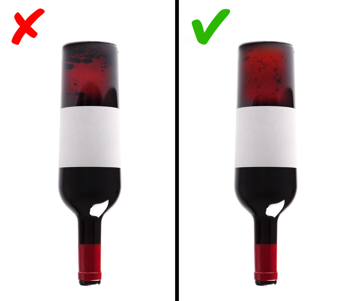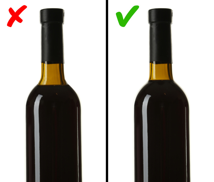 Перевірте рівень вина в області шийки. Якщо поставити пляшку вертикально, повинно залишатися не більше 2-3 см повітря над поверхнею вина. Інакше в контакті з вином знаходиться дуже велика кількість кисню, а це погано позначається на його смакових якостях.