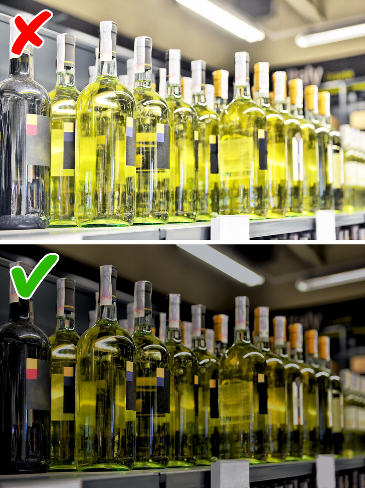 При виборі вина в магазині не беріть пляшку, на яку падав пряме світло, пляшку з вітрини або зберігалася поблизу від батареї. Вплив прямого світла або тепла робить смак вина прогірклим, позбавляють його свіжості.