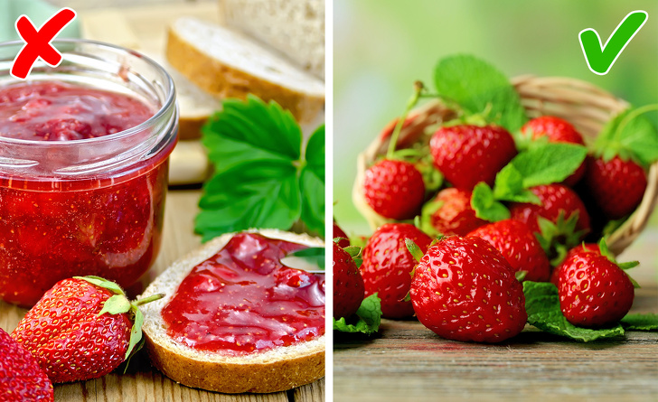 У формі варення полуниця зберігає деяку кількість вітамінів, але настільки незначне, що на антистресовий ефект розраховувати не варто. Тому рекомендується вживати її в свіжому або замороженому вигляді. До того ж в 100 г джему міститься близько 280-300 ккал, а це вже складно назвати корисним продуктом.
