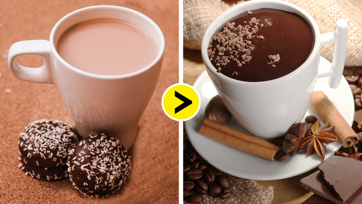 Якщо вам більше до душі гарячий шоколад — на здоров'я. Напій зберігає всі корисні властивості продукту, якщо, звичайно, це не порошок з загусниками, ароматизаторами та іншими добавками. Розчинний какао — не менш ефективний натуральний антидепресант. До того ж він менш калорійний: в 1 ч. л. порошку міститься тільки 23 ккал, а в одній часточці шоколаду — понад 50.