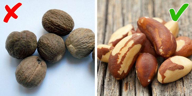 Виняток тут становить мускатний горіх, який можна вживати тільки в малих кількостях в якості прянощів. У разі передозування продукт діє наркотично: викликає прискорене серцебиття, галюцинації, нудоту і навіть смерть.