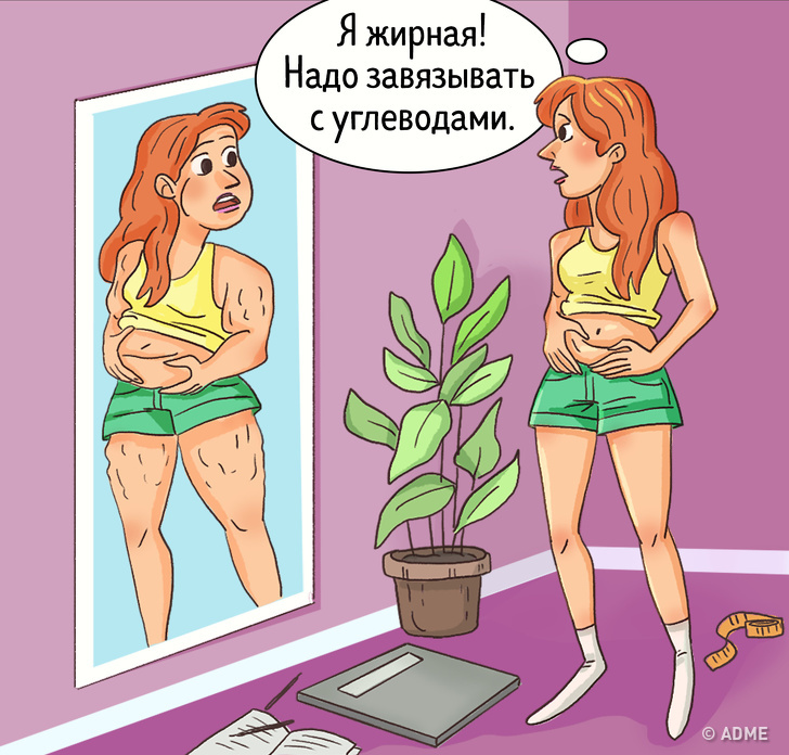 Один з найпопулярніших ритуалів у дівчат — крутитися біля дзеркала, розглядаючи живіт і стегна. І нічого такого в цьому немає, якщо ритуал не повторюється по 15 разів на день і не перетворюється на нав'язливу ідею.