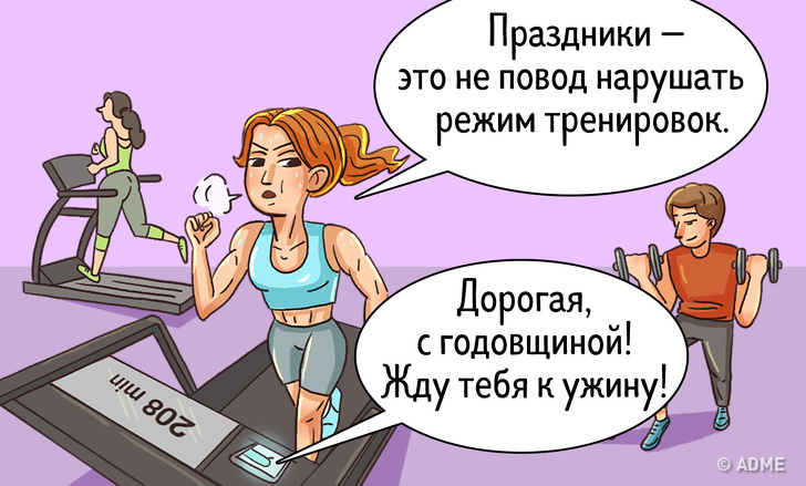 Якщо крім фітнес-залу у людини є робота, сім'я, дім, друзі і хобі, то щоденні вправи по кілька годин тільки вимотати його і зроблять асоціальною. Коли пропуск тренування викликає почуття дискомфорту або навіть паніку, а після їжі виникає потреба терміново спалити калорії, це може говорити про проблеми з харчуванням.