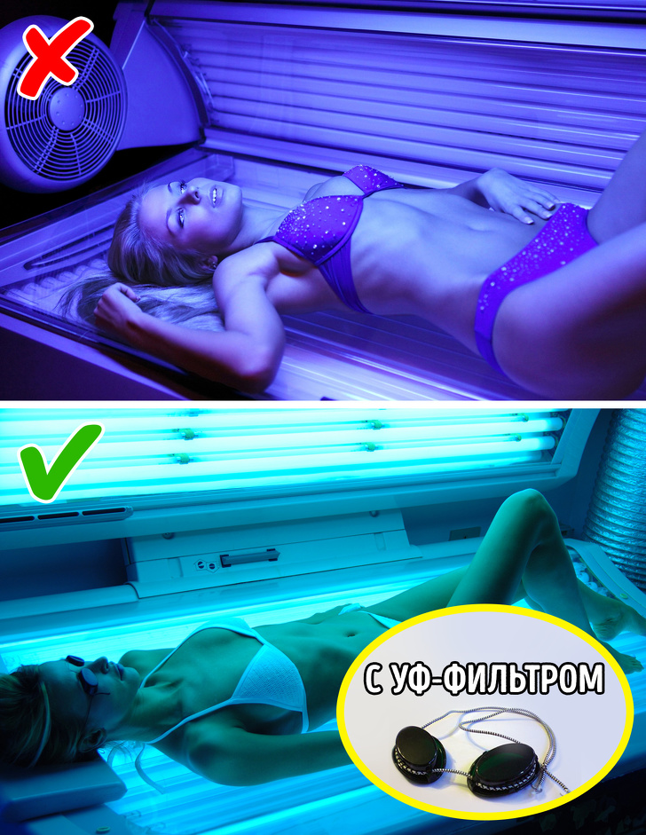 У Норвегії і Швеції було проведено дослідження за участю жінок, регулярно котрі засмагають в солярії. Вчені прийшли до висновку, що ця косметична процедура підвищує ризик розвитку злоякісної меланоми — найнебезпечнішого різновиду раку, яка також може локалізуватися на сітківці ока. Тому, вирушаючи на сеанс штучного засмаги, варто брати з собою спеціальні захисні окуляри, щоб уберегти очі від шкідливого впливу ультрафіолетових променів.