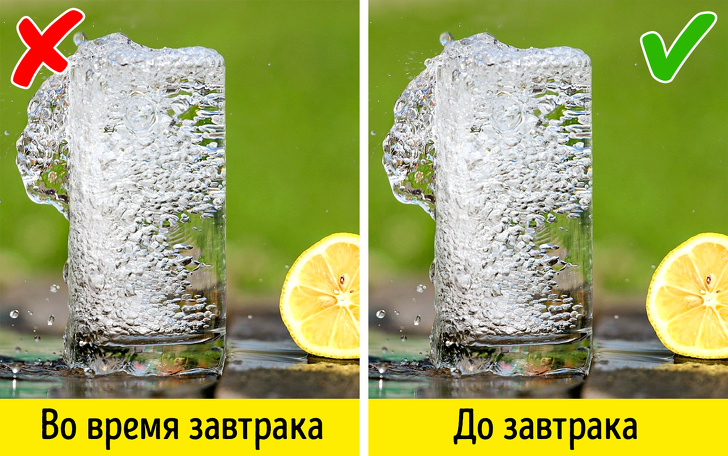 Організм дорослої людини на 55-60 % складається з води, пояснюють вчені, тому склянку води після пробудження — справжній подарунок. Вода прискорює обмін речовин, що знижує ризик відкладення жиру, і допомагає виводити токсини з тіла. Автор статей по продуктивності Кріс Бейлі (Chris Bailey) розповів, що в рамках експерименту, коли він починав кожен день зі склянки води, йому вдалося зменшити обсяг жирових відкладень в організмі з 17 % до 10 %.