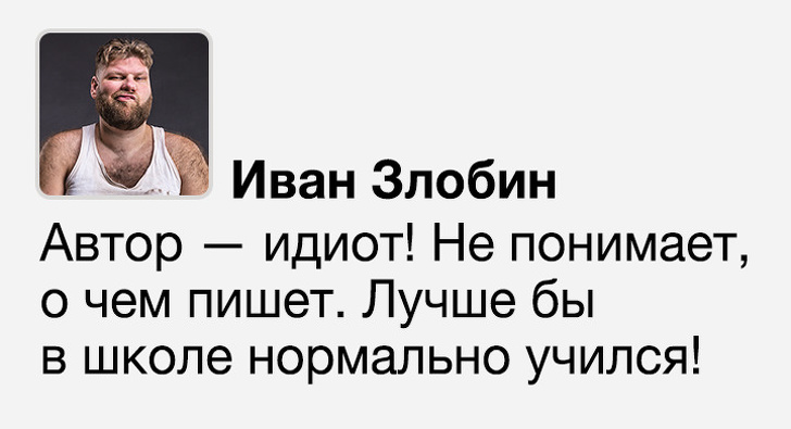 Деякі йдуть далі і не просто лаються у коментарях: вони вивішують на загальний огляд фрагменти листування з друзями, репостят чужі записи, супроводжуючи їх отруйними коментарями, або публічно вказують іншим на їхні помилки.