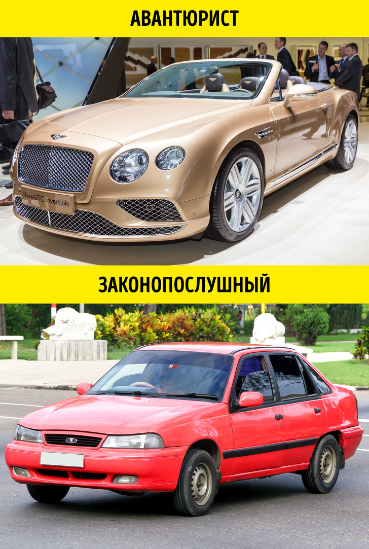 Стереотип про те, що чим дорожча машина, тим більш егоїстичною веде себе на дорозі її власник, не так вже далекий від правди. Дослідження показали, що водії дорогих автомобілів преміум-класу більше зосереджені на власних вигодах. Їх менше турбує чужу думку і сильніше приваблюють авантюри, а тому вони можуть і поступитися правилами. Такі водії більш рвучкі і цілеспрямовані, ніж ті, хто вибирає машини скромніше. Власники недорогих авто більш уважні до оточуючих і законослухняні.
