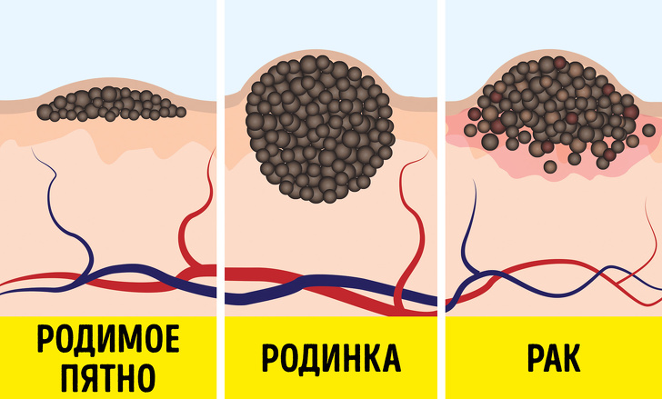 Злоякісна пухлина під час зародження часто виглядає як звичайна родимка. Лікарі радять пройти огляд у онколога або дерматолога в медичній установі, якщо на вашому тілі більше 50 родимок. У групу ризику потрапляють світлошкірі, блакитноокі і руді люди, а також ті, у кого на обличчі ластовиння.