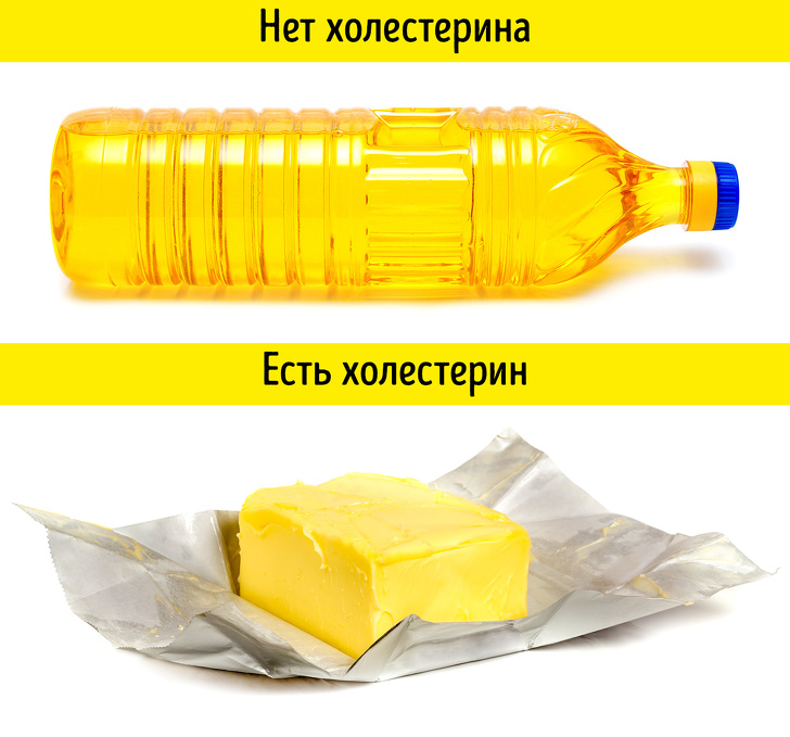 8. Напис «Не містить холестерину» на упаковці рослинного масла — це рекламний трюк