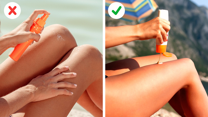 Фахівці згодні, що іноді сонцезахисний спрей більш зручний у застосуванні. Але в цілях особистого використання зазвичай віддають перевагу саме крем. Спрей неможливо нанести досить товстим шаром, крім того, даний засіб при розпиленні частково потрапляє в повітря, а не на шкіру, частково вдихається. Також дерматологи вважають, що фізичні сонцезахисні засоби, тобто ті, у складі яких є, наприклад, оксид цинку або діоксид титану, більш щадні до шкіри і ефективніше в порівнянні з хімічними аналогами. На відміну від останніх фізичні продукти захисту відбивають ультрафіолетові промені, а не поглинають їх.