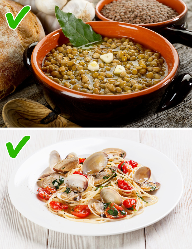 - Змініть свій раціон і включіть в нього овочі, фрукти та продукти, багаті вітаміном В12 (риба і морепродукти, молоко, сир, яйця, курка), В9 (рис, квасоля, сочевиця), міддю і залізом (кешью, печінка, мигдаль). Велика кількість білка і вітамінів допоможе не тільки вашим волоссю, але і тілу підтримувати форму.
