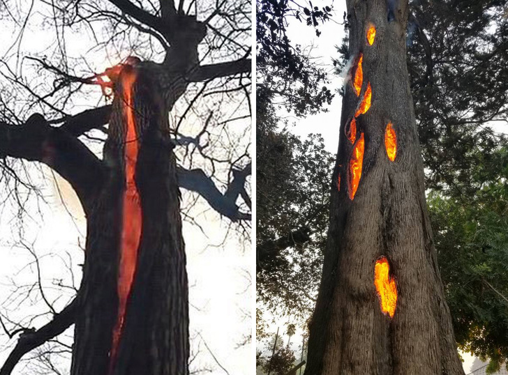 Пізніше експерти пояснили, що таке трапляється часто, коли в дерево потрапляє блискавка. Кора чорніє, а всередині затримується температура, яка і створює ефект вічного горіння.