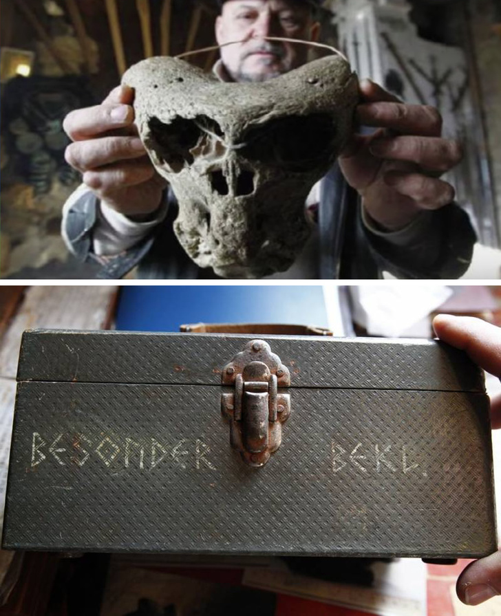 - Скринька з шкіряною ручкою, емблемою таємного товариства «Аненербе» і написом, стилізованої під руни, знайшов один місцевий відлюдник. Сама напис Besondere Bekl означає приблизно «Особливу вкладення» або «Особливо важливе». Але сам скриню був порожнім.