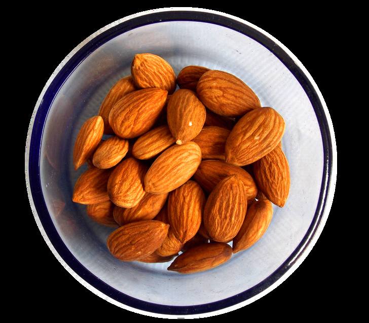 Мигдаль в якості перекусу або перед основними прийомами їжі знижує рівень жиру в загальній масі тіла. Оскільки продукт — альтернатива тваринного білка, він дає тривале відчуття насичення, отже, переїдання під час прийомів їжі виключається.