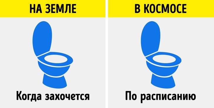 За рахунок того, що в космосі відсутня сила тяжіння, астронавти не відчувають тиску при наповненні свого сечового міхура. Тому вони повинні ходити в туалет з періодичністю раз в 2 години. Коли ж астронавти виходять у відкритий космос і надягають скафандри, вони зобов'язані носити підгузки.