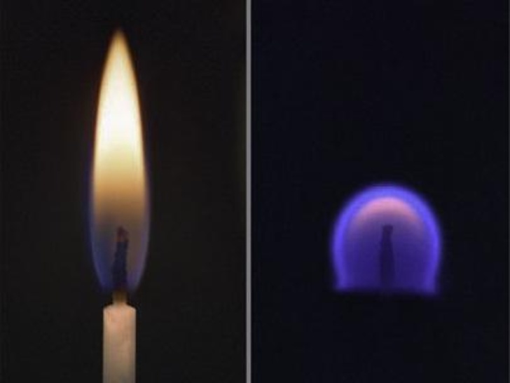 У космосі полум'я вогню буде не витягнутим вгору, а округлим, так як в невагомості відсутні легкі та важкі гази (а також сила тяжіння), які впливають на полум'я і сприяють його разгоранию. Саме тому в космічному просторі вогонь рівномірно розходиться по сторонах і утворює тепла кулька, який ще і дуже швидко згасає.