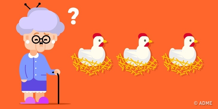 Бабуся поправилася і переїхала в село. Там вона завела 3 курок, які несли 3 яйця за 3 дня. Дізнавшись про це, Маша вирішила, що продавати яйця — досить прибуткова справа, і купила бабусі ще 12 таких же курок.