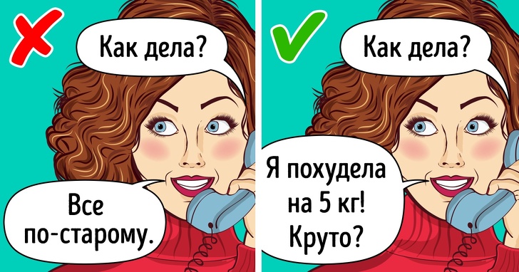 Намагайтеся щоразу придумувати нові відповіді на звичні запитання типу «Як справи?», «Що нового?», «Чим займаєшся?». Запам'ятовуйте анекдоти, цікаві цитати, придумуйте нові жарти, цікаві історії — і використовуйте їх у спілкуванні.