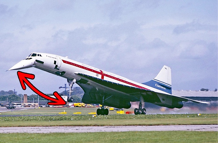 Але британські інженери вирішили цю проблему і в 1969 році зробили один із самих швидких пасажирських літаків, ніс якого може змінювати нахил. Під час зльоту і приземлення ніс опускається, а під час польоту наводиться у вертикальне положення.