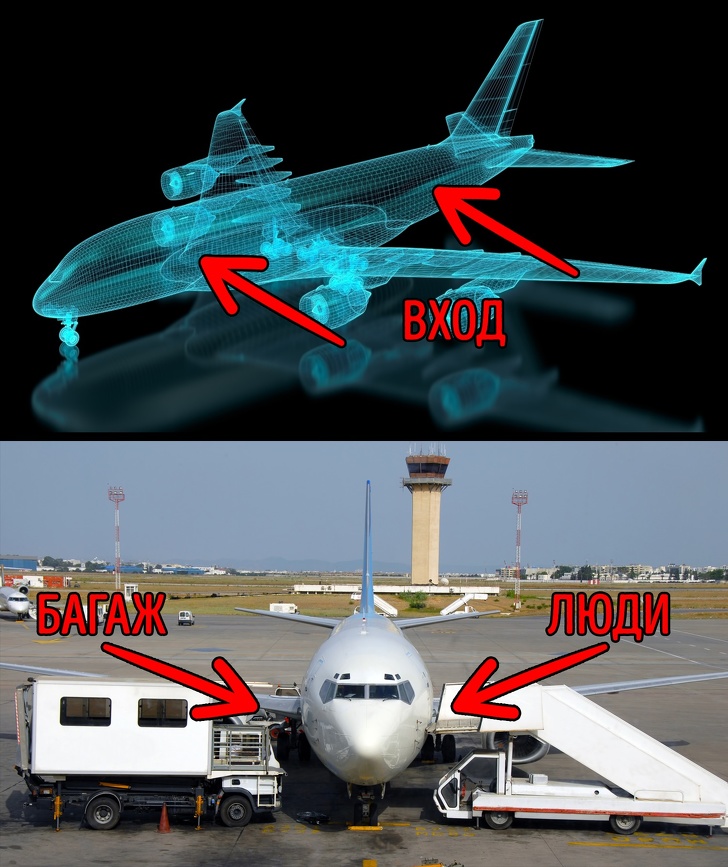 - Версія 1. З правого боку завантажують багаж (багажні люки знаходяться праворуч), тому пускати пасажирів теж справа небезпечно.