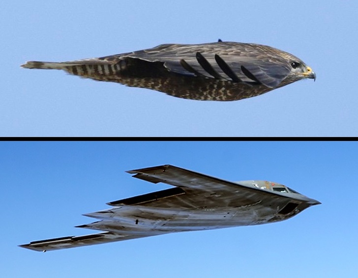Конструкція літаків підглянена у птахів. Хижі птахи приймають таку позу, щоб збільшити дальність польоту і бути менш помітними.
