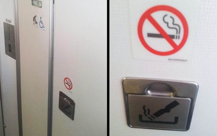 Палити в літаках не можна, це всі знають. Але навіть нові моделі обладнані попільничками, які знаходяться в кабінці туалету. Все тому, що, незважаючи на заборону, деякі польоти тривають по кілька годин і завзяті курці все одно курять.