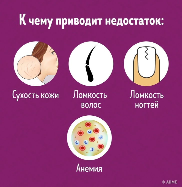 Звідки отримати: на 100 г устриць припадає 7 мг заліза, в 100 г яловичини міститься 2,6 мг, 100 г курячої печінки — 17 мг.