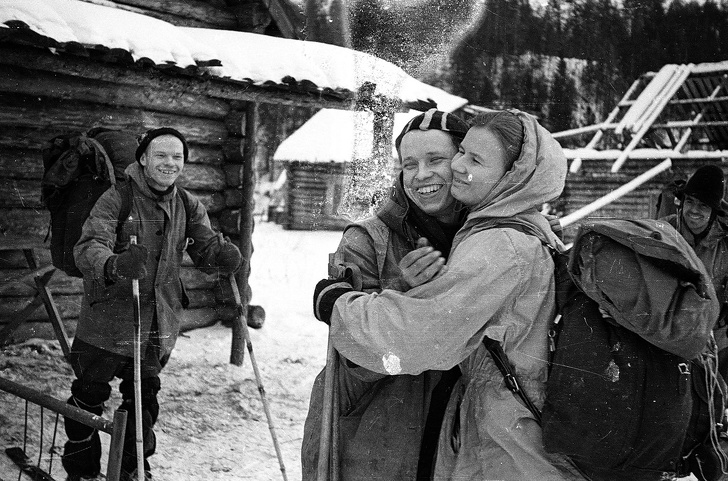 © Зліва направо: Ігор Дятлов (23 роки), Зінаїда Колмогорова (22), Рустем Слободін (23), Юрій Дорошенко (21), Георгій Кривоніщенко (23), Микола Тібо-Бриньоль (23), Людмила Дубініна (20), Семен Золотарьов (38), Олександр Колеватов (24), Юрій Юдін (вижив, тому що зійшов з дистанції на початку шляху через травму ноги).