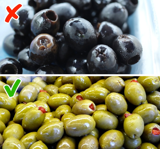 Чорні оливки в жерстяних банках — це зелені плоди, пофарбовані харчовими добавками, найчастіше глюконатом заліза. У малих кількостях він безпечний, однак чекати користі дозрілих маслин від такого продукту не варто.