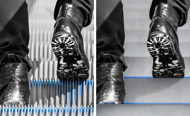 В зимовий і осінній час року на східцях ескалатора накопичується волога і шанси пасажирів посковзнутися і впасти помітно збільшуються. Саме від цього і захищають об'ємні вертикальні смужки: вони покращують зчеплення між підошвою пасажирів і ступенями. А отвори між різьбленням необхідні для відводу вологи.