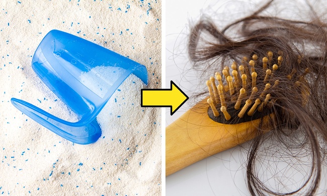 Ви не повірите, але хто дійсно користується цим методом! Якщо експеримент з фарбуванням волосся не вдався, то можна вимити голову порошком для прання, використовуючи його замість шампуню. Такий спосіб дійсно допомагає прибрати фарбу з волосся. Проте в порошку містяться агресивні ПАР (поверхнево-активні речовини). Вони викликають сухість шкіри голови, подразнення, висип і випадання волосся.