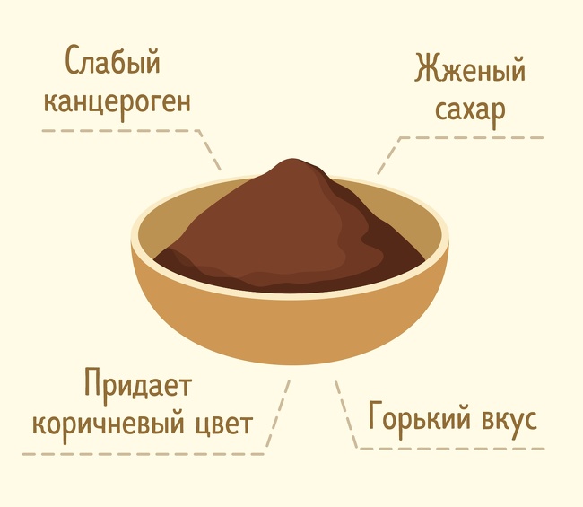 Барвник E-150d — найнебезпечніший вид барвника E-150. Сам по собі цукровий колер — це, грубо кажучи, палений цукор. У невеликих кількостях він безпечний, але ставитися до нього потрібно з обережністю. Є думка, що це слабкий канцероген, що провокує розвиток ракових клітин в організмі. Точка зору спірна, але популярна.