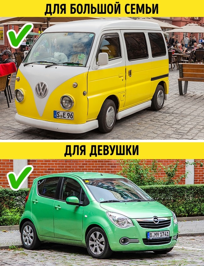 Наприклад, якщо вам потрібно просто засіб пересування по місту, то краще придивитися до невеликим седанам, які витрачають мало палива. Якщо у вас велика сім'я і ви часто виїжджаєте на дачу, то зверніть увагу на місткі мінівени, універсали або хетчбеки. Позашляховики більше підходять для тих, хто вкрай рідко їздить по асфальту.
