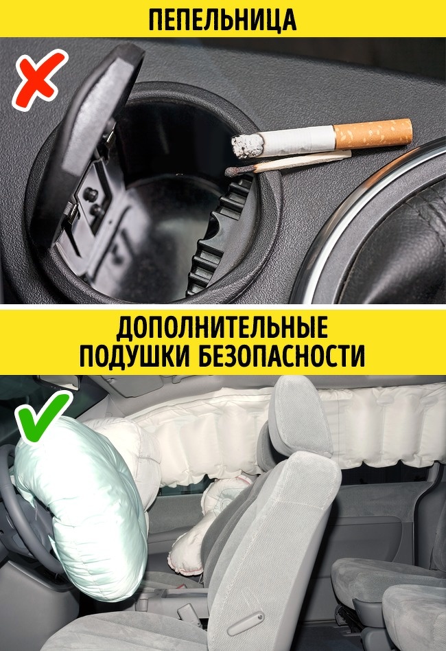 Приміром, багато водіїв вважають за краще курити за межами автомобіля. У такому разі прикурювач і попільничка напевно будуть зайвими. Додатковий захист від корозії теж не потрібна — у автомобілів і так є антикорозійна обробка. Зате функції безпеки дуже важливі, і їх варто вибирати уважно.
