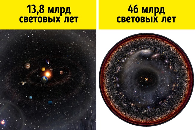 Здавалося б, все досить логічно — якщо великий вибух стався 13,8 млрд років тому, то ми можемо бачити об'єкти, які віддалені від нас на відстані не більше 130 секстиллионов км. Однак найбільш віддалені об'єкти, відомі сучасній науці, знаходяться на відстані 46 млрд світлових років — тобто в 435 секстиллионах км від нас. Дивно, чи не правда?