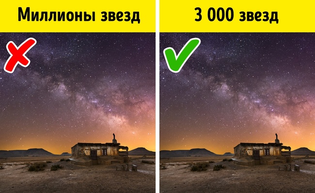 Проте неозброєним оком земляни можуть бачити лише 6 000 зірок та й то по 3 000 на кожне півкуля. Крім того, навіть така кількість доступно лише тим, хто опиниться в пустелі, причому високогірній. Проте найбільше пощастить щасливчику, який виявиться на екваторі в момент, коли наша планета зробить половину обороту навколо Сонця: йому відкриються всі 6 000 зірок. А ось звичайний міський житель і зовсім буде задовольнятися максимум 200 зірками, та й то в саму ясну ніч.