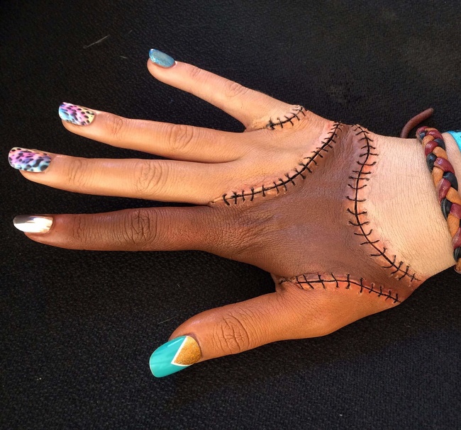 17. Дівчина за допомогою гриму показала, як виглядають різні відтінки шкіри на одній руці